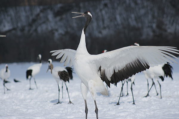 右:ウグイゲット | 口を開くタンチョウ | ||