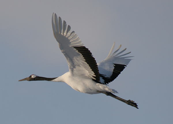 鶴見台 夕日を浴びて飛ぶ タンチョウ |