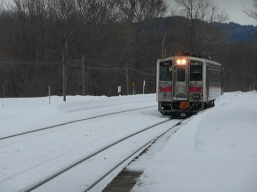 今回の宿泊先「温泉浪漫の宿 湯の閣」の朝食は夕飯より美味しかった(^_^;) 特に鮭が大きい切り身で甘塩で最高に美味しかったです。 量的にはやはり最低ランクですがね。 8:17の釧路行き列車に乗るために宿の人に7:50に駅まで送って頂きました。 途中、昨晩ダイヤモンドダストパーティーをしたところでは朝気温が下がったようで 樹氷が物凄く綺麗でした。 川湯温泉駅へは10分も掛からず到着。 ここはあし湯もあるのですよ。 列車は1両編成で時刻どおり到着。 ほとんど人が乗ってませんでした(笑) 列車の中央の2席だけテーブルが設置されてます。 1両なのに道中がながいのでトイレも完備 |