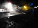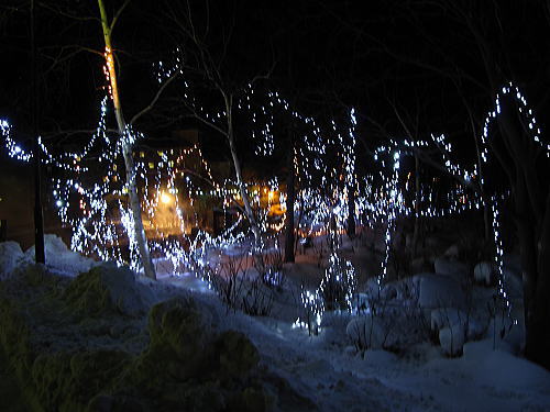 ツルセンターのブログを担当してるミキィさんと知り合いになってましたので 「帰りに本館に・・・」と言われ本館に行くと(来る時も本館からだったので) 粗品をパパと2人分くださいました。 ミキィさん ありがとう♪ 阿寒国際ツルセンターを後にし、鶴見台へ移動中、 タンチョウが道路の上を飛んでる所を見ました。 冬場はあっちこっちでこういう光景を見ることが出来ます。 そして鶴見台は個人所有でおばあちゃんが餌付けに成功した場所です。 ここでも冬場は毎日ほとんどタンチョウが見られます。 川湯温泉「ダイヤモンドダストパーティー」は参加無料で夜9時から30分間だけ 開催されます。 ※天候により中止になることもあるそうですので詳細は宿泊先等へお尋ねください。 夜8時半頃、歩いて5分程の会場(足場が悪いのでもう少し掛かったかな)へ 向かいました。 途中おみやげ屋さんもオープンしてます。 そして歩いてる時、鼻の中に違和感が・・・ そうです!鼻の中の水分が凍って息を吐くたびに変な感じなのです(苦笑) 今までスキーに行っていくら寒い所でもあまり経験がないと思います。 いゃ〜気温が低いってこんな感じなんだなぁ〜と改めて実感(^_^;) でも寒さは?と聞かれると風がほとんどなかったので寒さは感じず、 それよりも家の方の空気が乾燥した夜の寒さの方のが寒いくらいです(笑) この日はパーティーの終盤になり気温がマイナス13度まで下がりました。 (天気予報上は21時の気温−17.4度となってます) 大きなバルーンにドライアイスを入れて空気を冷やしダイヤモンドダストが より一層みれる環境化にします。 そこにライトを当て見やすくするそうです。 写真に撮るのはプロカメラマンでもかなり難しいそうです(^_^;) 目で見る場合は真っ白なのが雪で七色に輝いてるのがダイヤモンドダストだそうですよ。 自分の目で見るとそれがはっきりわかります。 |